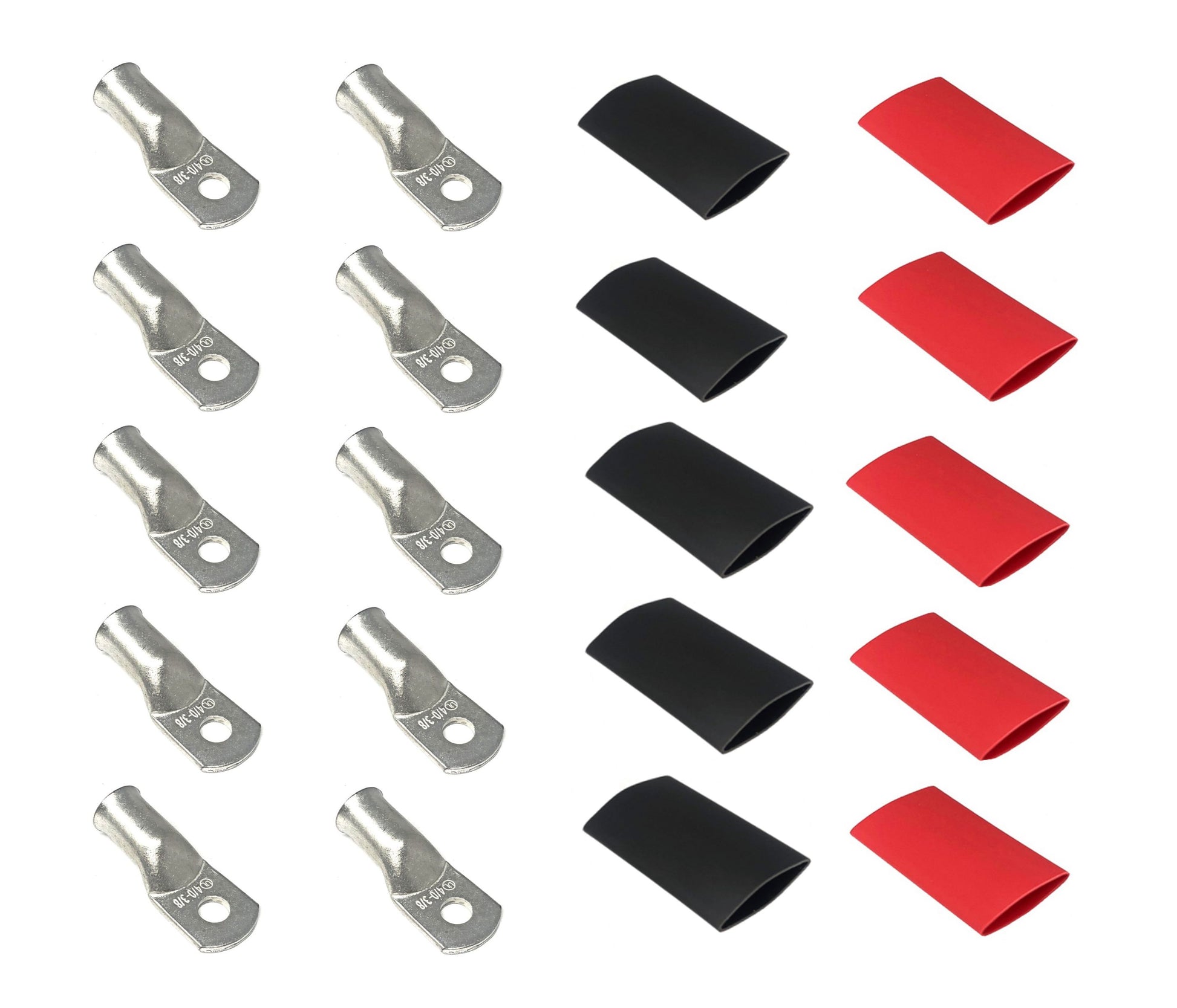 - Includes pure copper cable lugs + black & red heavy-duty dual wall adhesive lined heat shrink tubing. Package includes 1.5 inches of heat shrink tubing per cable lug (half black and half red)