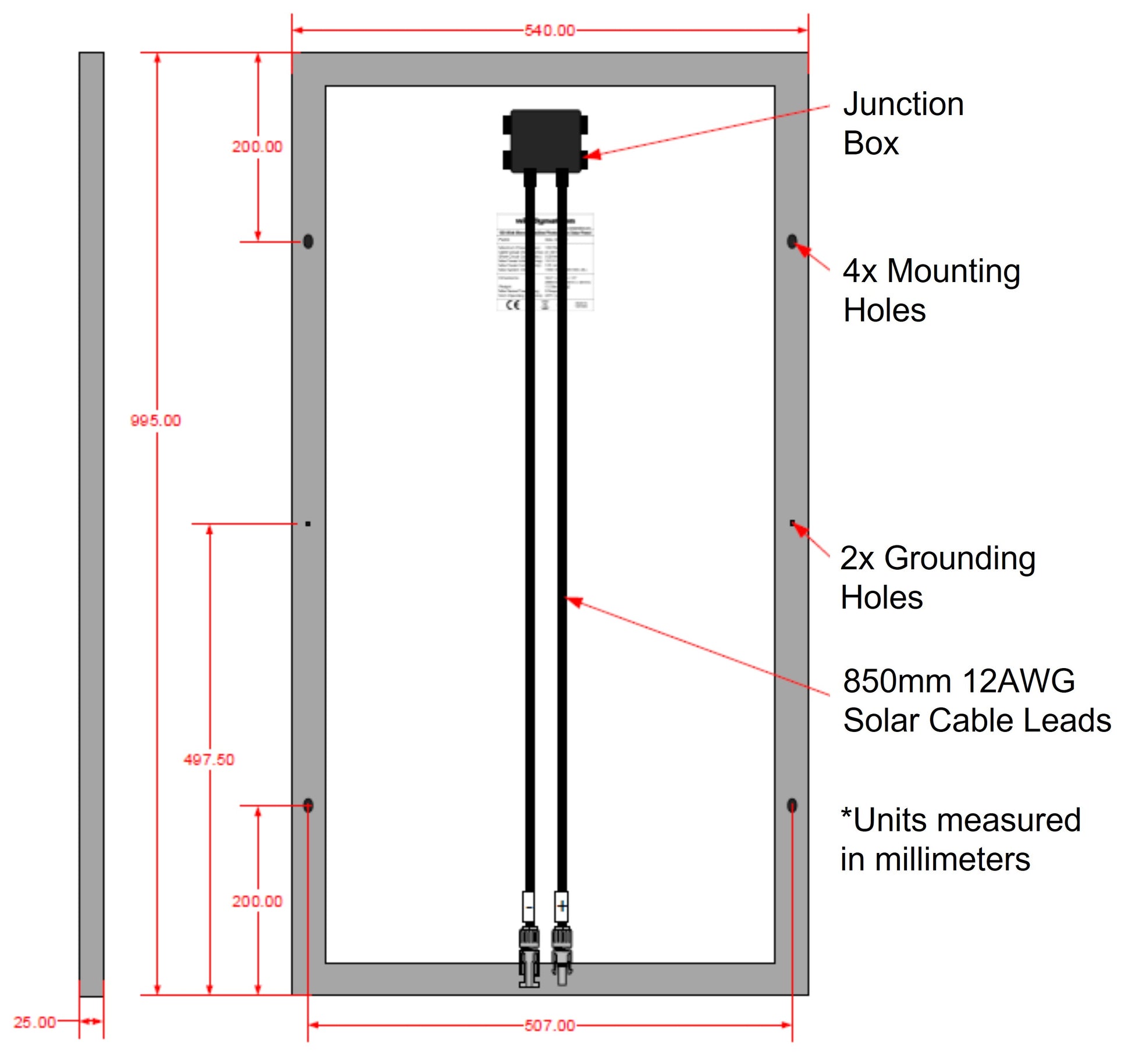 - 40 ft. of UL Listed 12 AWG Solar Cable